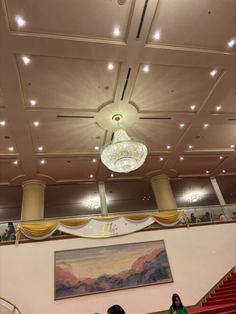 館内には、ものすごく豪華なシャンデリア。
